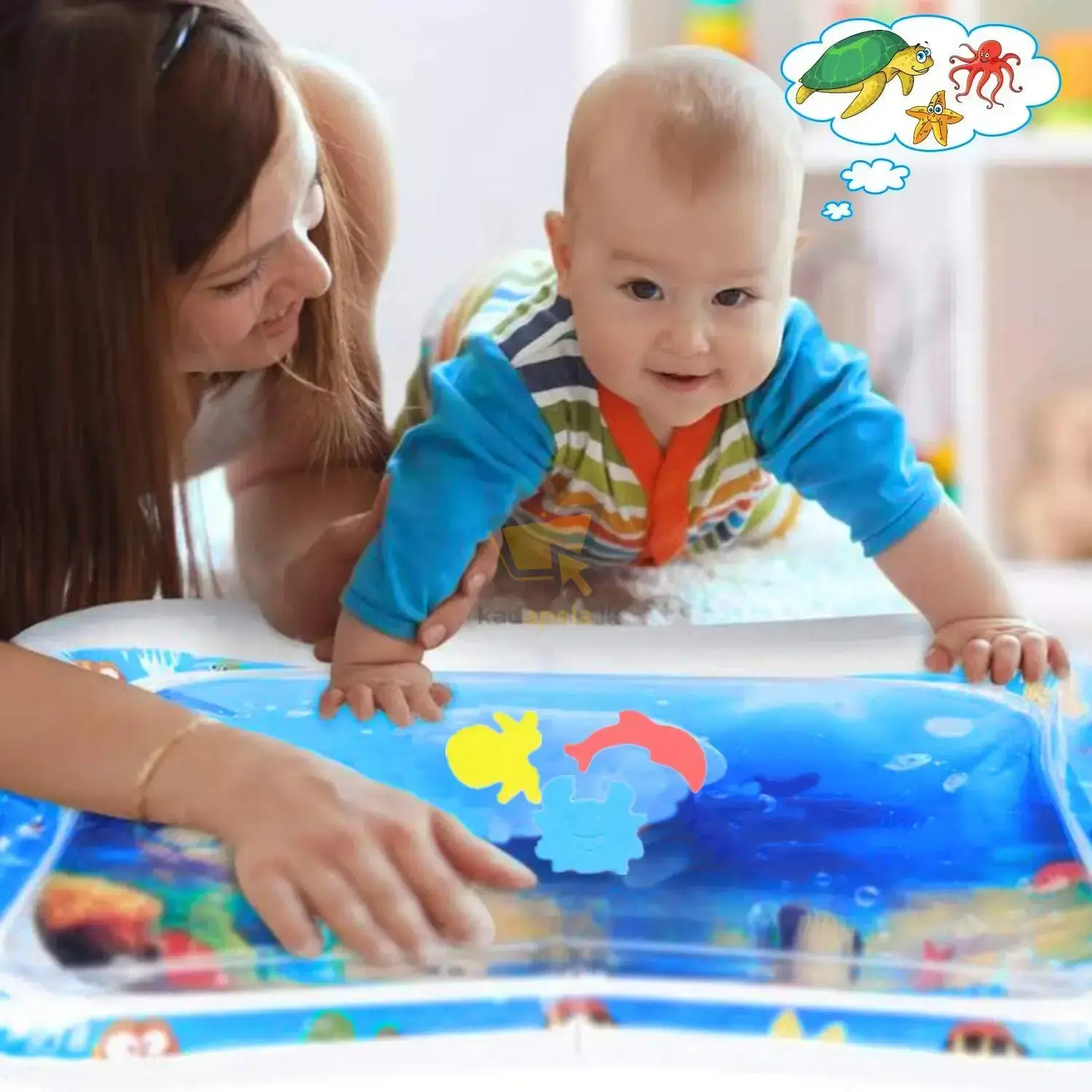 🎈 සිත් ඇදගන්නා දීප්තිමත් පාටින් සැරසුණු මේ Water Play Mat එකේ සීග්රෙන් පාවෙන රංග රටාත්, කුඩා සෙල්ලම් බඩුත් දැක්කම – ඔබේ දරුවා ඒවා අල්ලන්න හිනාවෙන උත්සාහ කරනවා!