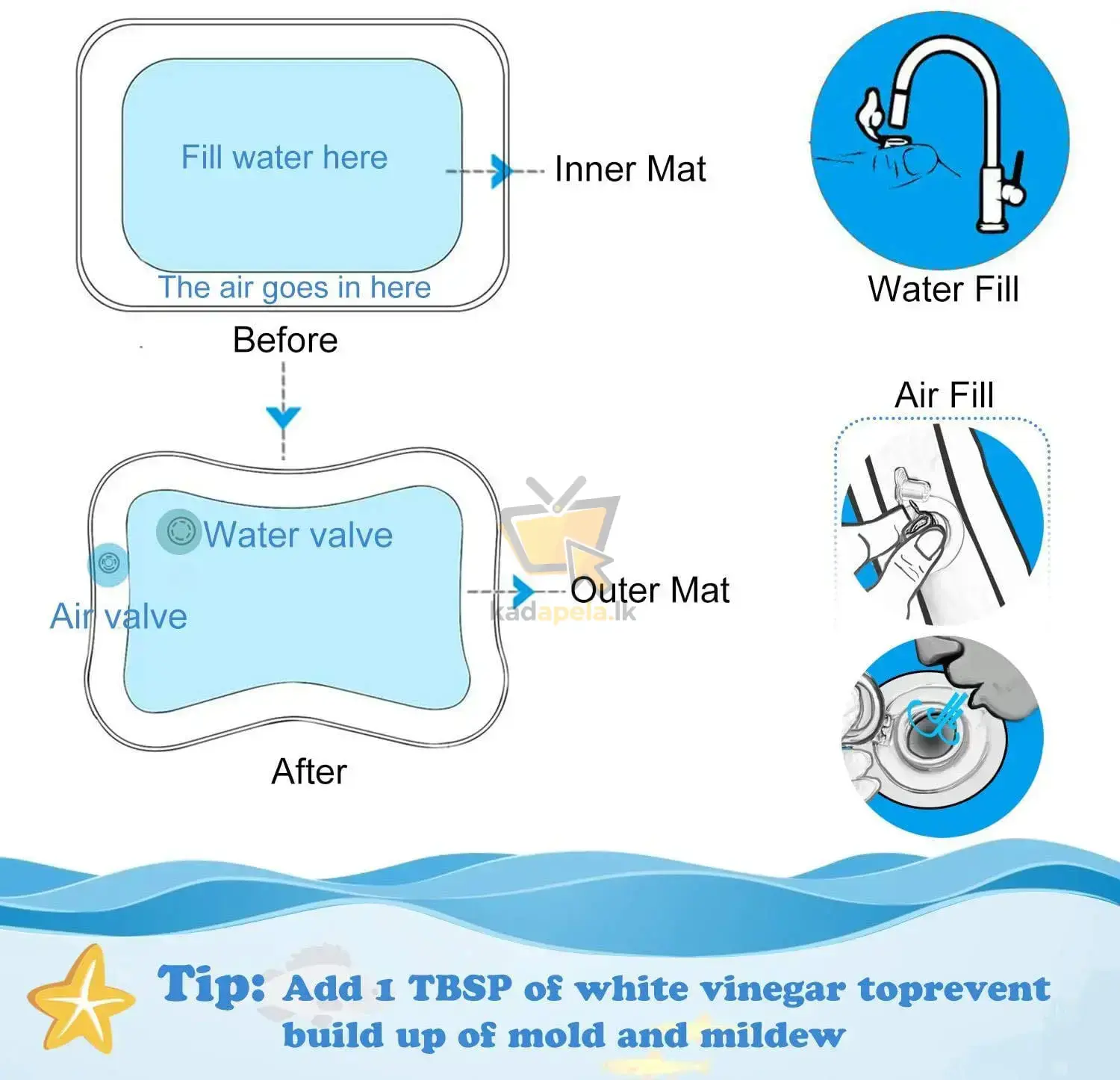 🌊 100% Premium Water Play Mat – BPA-රහිත, extra-soft materials වලින් completely leak-proof – ඉතින් safe & comfy tummy time එකක් guaranteed!
