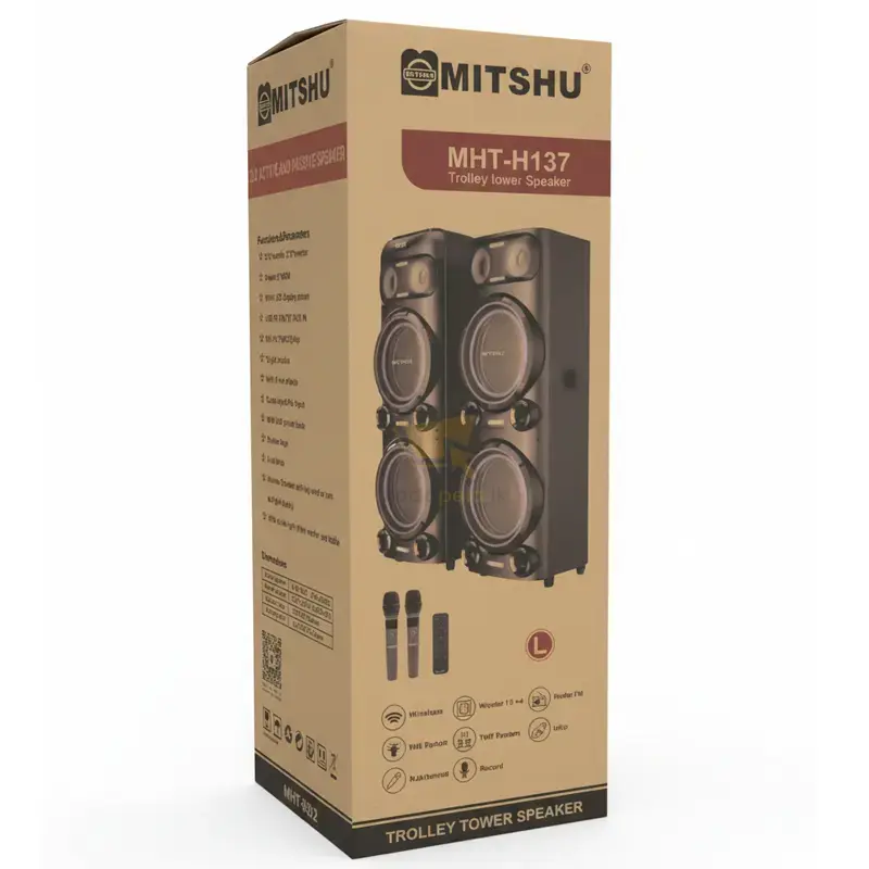 MITSHE MHT-H137 Trolley Tower Speaker: Experience powerful audio with this versatile tower speaker. Featuring a trolley design for easy portability, it's perfect for parties, events, or home entertainment.